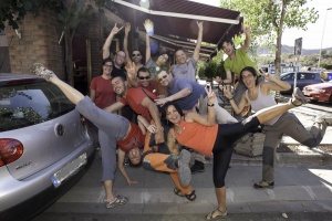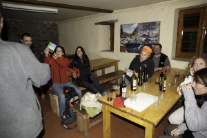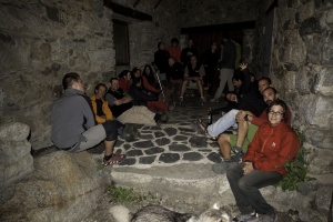 Xarrada i rises a la porta de l'alberg