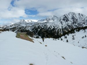 Aquest es un cim amb una vista molt extensa sobre el Carlit, el Coma d’Or, Pimorent, etc, pero en aquest cas, nosaltres no la vam poder gaudir doncs el temps que vam estar al cim va ser precisament, mentre passava un front nuvos, que en prou feina podiem veure 10 metres, malgrat aixo un cop vam baixar a Lanos ja vam poder gaudir d'una tarda esplèndida.