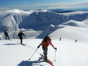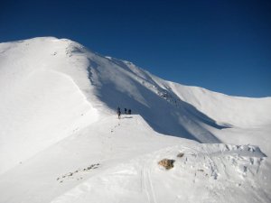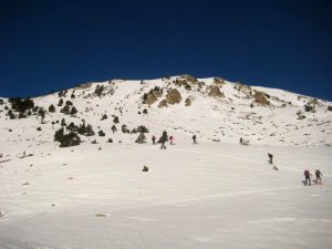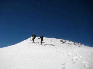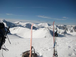 ...i s'instal·lem un moment al collet, per treure pells i preparar-se per a la baixada.....