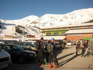 A l'estacionament superior de Vallter (2155m) a les 9 del matí, no cabia ni un ànima.....