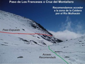 Para acceder a la zona de Cumbres es imprescindible Piolet, Crampones y saber utilizarlos. En general, por esta zona, nos vamos a encontrar la nieve muy dura y hielo. Aún nos podemos encontrar zonas con nieve costra poco profunda y algunos depósitos de nieve polvo en las cotas más altas.
