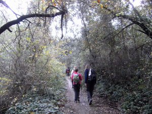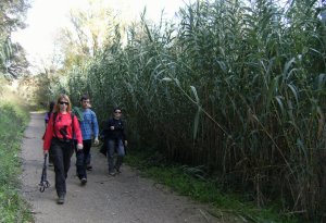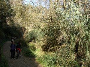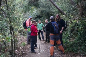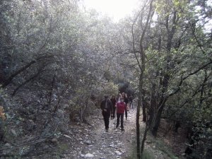 Saliendo de Can Rabella hacía Les Escletxes. Delante Ana, Piluca y Anna.