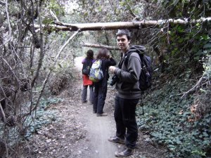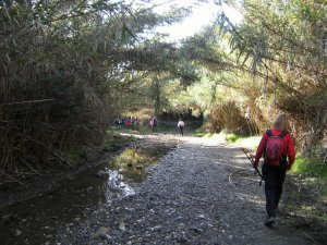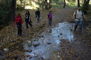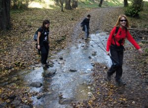 Cruzando la Riera de la Rierada o de Vallvidrera. Delante Anna y Eva (Foto: Marc)