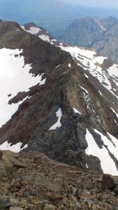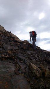 El ascenso a la Punta Sabre impresiona más de vista que una vez estás en él. Si buscas bien los pasos la trepada no debe salir más de I o II eso si, con ambientazo :)