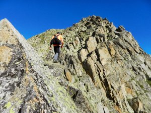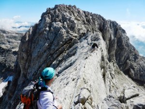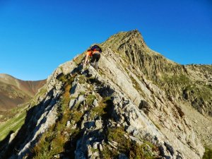 Superat el tram més delicat i progressant per l'esmolada cresta.