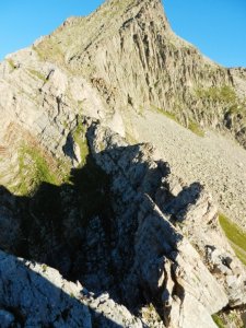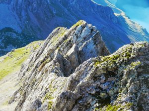 Passat el coll intermig, encarant l'aresta un tant caòtica (II/II+)(II/II+)