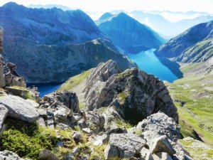 Seguint el fil del cordal, amb l'estany de Llauset darrera