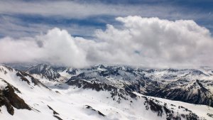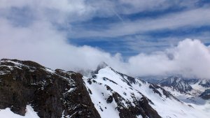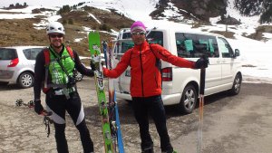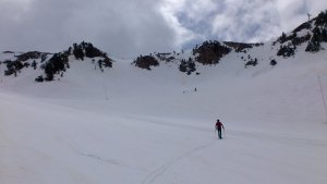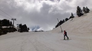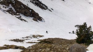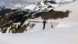 La neu esta ja, complicadeta per esquiar,per dir-ho d'alguna manera jejeje .... molt pesada, molt pasta,... a la part de dalt com hi ha poca pendent, costava fer els girs, ... per aixó al final jo he baixat per on hem pujat, l'alberto si que ha tirat per el tubo nere. Cap a baix, encara que igual de pastosa, al haver una mica més de pendent, ja s'esquiava millor