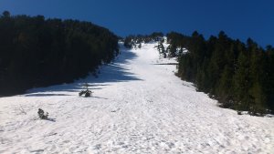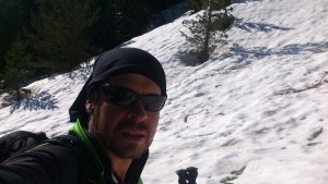 Ya desde el collado, primero unos metros con nieve aun un poquito dura y luego una nieve polvo increible!!!