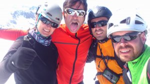 Ahí dejamos los esquis, puesto que la nieve esta muy muy dura y nos calzamos los crampones y el piolet.... excepto Alberto, que si que se sube los esquís.