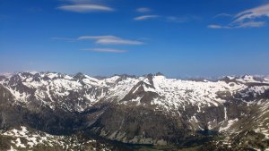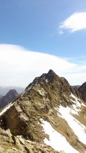Anem seguint un track que m'havia baixat del wikiloc... que ens porta al huerto :((( ... ja que no porta al Pic de Subenuix, sino al Pic dels Estanyets, tot i que estava amb el titol de Pic de Subenuix, i com amb el mapa no ens acabava de quedar clar (esta destrossat)... pero be, fins hi tot va estar millor perque vam fer la cresta (per evitar un flanqueix amb neu, haviem deixat els crampons al coll) que porta al coll entre aquest pic i el Subenuix; cresteta facilona pero molt de ull amb algun bloc que algún ensurt ens va donar. Arribada al cim amb vendaval inclós.