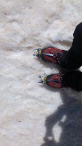 De baixada, per evitar ensurts, i perque me feia ilusio estrenar-los, ens vam posar grampons.