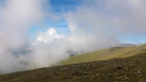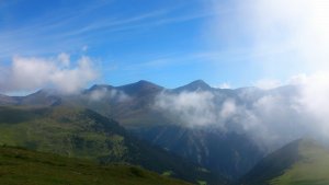 Empezamos el dia con pocas nubes, ahí delante el Puigmal