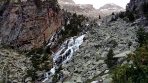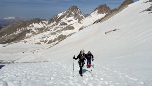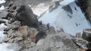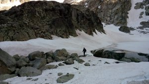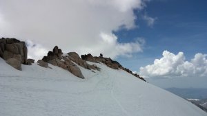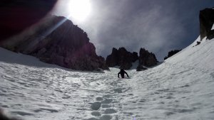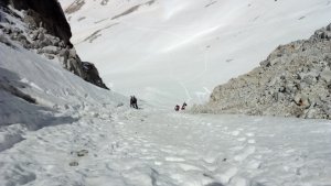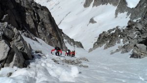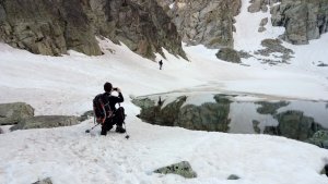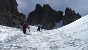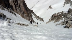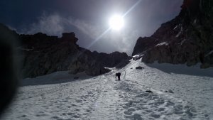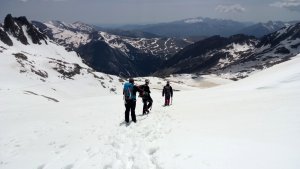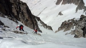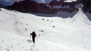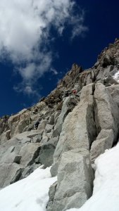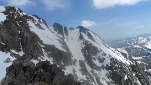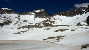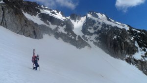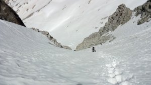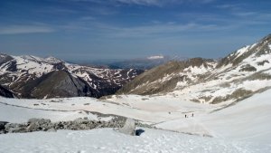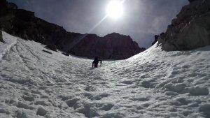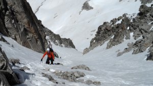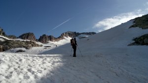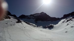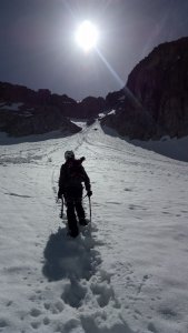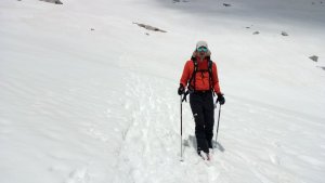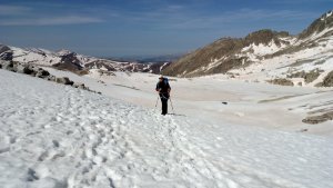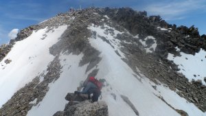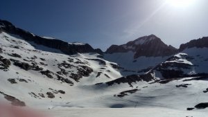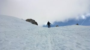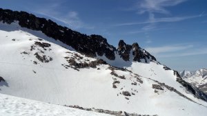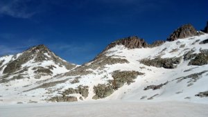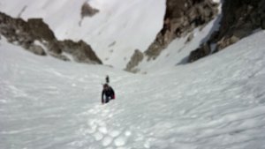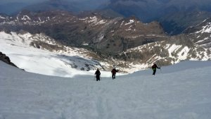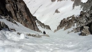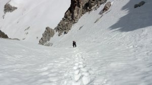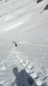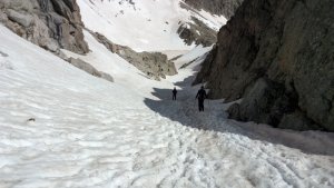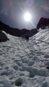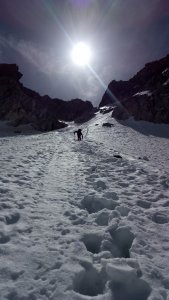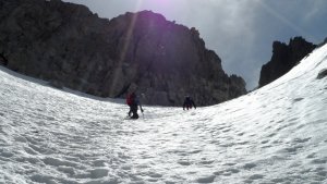 La nieve empieza sobre los 2600m. Como no ibamos muy pronto, estaba ya un pelin pastita. El Estasen, con nieve hasta arriba, con una traza que parecia una autopista jijiji. Descartamos el Petit Black porque nos cruzamos con unos que lo acababan de subir y nos dijeron que la nieve de la salida estaba muy suelta y delicada.