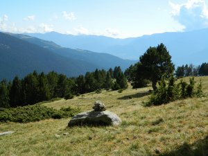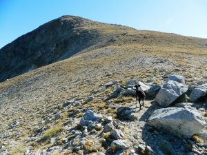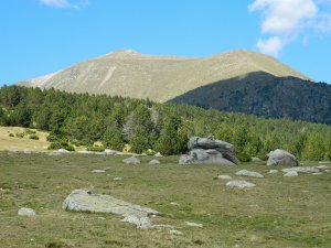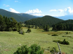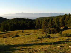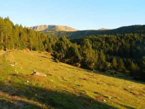 Desfilada llarga de prats, boscos, prats.... fins a uns 8,5 km. totals tant sols per fer cim, que es veu al fons... I 8,5 km. a banda per tornar, clar...