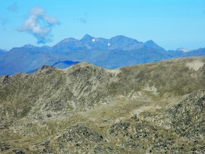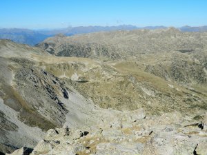 I a oest la Tossa Plana de Lles i el Tossal de Vallcivera, amb el Pic de Setut entre tots dos.