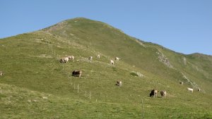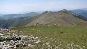 La herbosa cadena sudeste del Fontlletera, por la que hemos subido y volveremos a bajar.