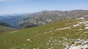 Ya volviendo hacia el sur por la cadena entre Pasuira y Fontlletera, un vistazo hacia el oeste, con el refugio Coma de Vaca en bajo y Puigmal al fondo.