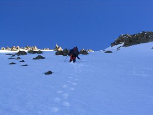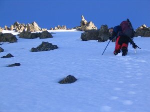 Empezamos a subir... hemos decidido que subiremos a un picacho que hay cerca del refu.. la nieve no deja pa mucho más