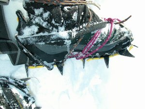 El grampon de Madveras y la ñapa de emergencia con un cordinillo y un cordón de bota