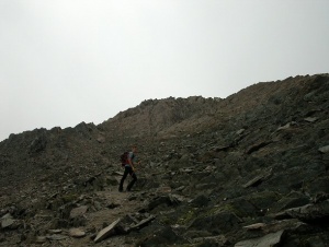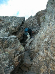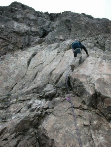 El famoso Paso del Gato, destrepando. Por la fisura de la derecha se sube sin problemas metiendo pies y manos