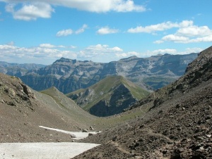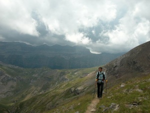 Camino al Robiñera, con las paredes del Valle de Pineta al fondo