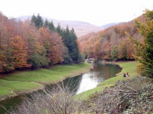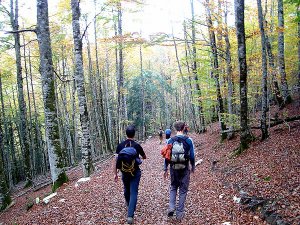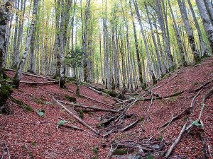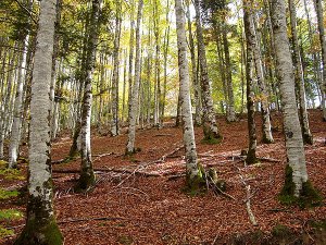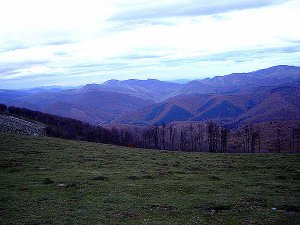 El bosque de Irati, ya en la puesta de sol, desde una de las lomas superiores de la Sierra de Abodi