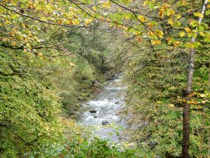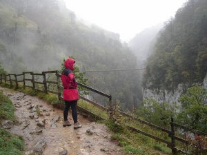 En primer plano Fern, al fondo la pasarela de Holtzarte