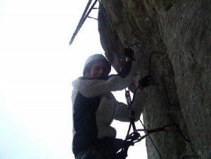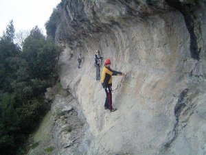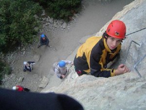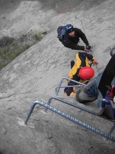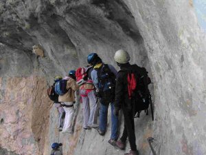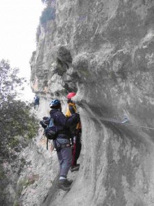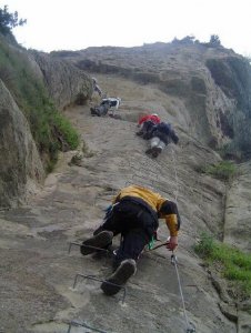 Sigrid, Florenci, Albert , y Japallas esperando a comenzar la vía ferrata