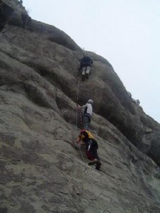mis 5 compañeros al inicio frente a la primera pared a subir ...