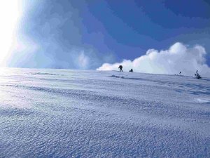 Terreno de unos 1400m de altura, que debemos atravesar a modo de travesía glaciar, hasta cerca del collado del fondo