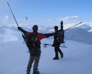 jhelicóptero intentando aterrizar, y Kris con tres Jordis bajando del Puig Estela...