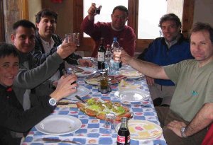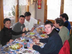 Almorzando con buenas vistas: Miquel, Jordi C, Kris, Jordi, otro Jordi y Amunt