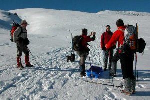 Jordi y Waldo acabando las palomitas, Pratenc con el trípode, Tonimd acalorado y uno de los tres esquiadores
