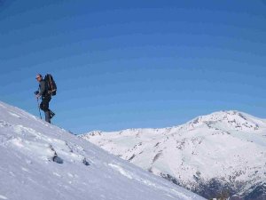 Pratenc en la subida final al Taga. Al fondo el Puigmal.