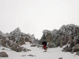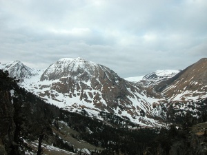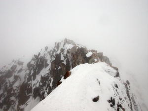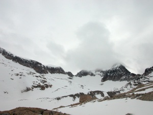El Aneto cubierto por la niebla, y el colado de Coronas