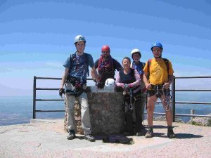 los cinco coronando el macizo de Montserrat, final de la vía ferrata
