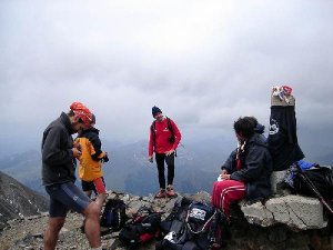 Tonito, Carlos y Rodri tras su llegada la cima. En segundo plano puede verse el marrón que se estaba montando