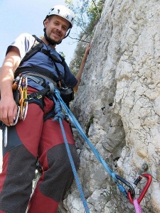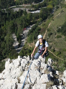 Madveras en la primera R, apunto para salir hacia el segundo largo, el de IV