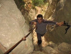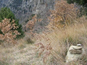 Por el camino de encima de la pared, a buscar la Canal dels Ganxos