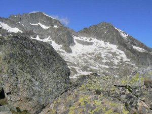 Pico Boum y Mail Barrat, desde el glaciar de Maupas. Y al fondo, el macizo de la Maladeta