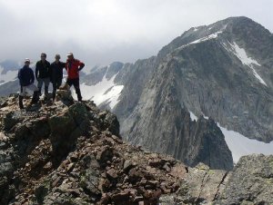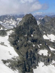 La cima occidental del Boum desde la oriental (un metro más alta), con el Maupas de telón de fondo