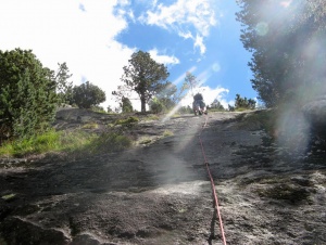 Liderando L4. Este último largo solo tiene un paso complicado, justo al llegar a la última reunión