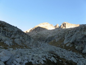 La subida es por la canal de la izquierda, bastante pedregosa y en ocasiones desecha.