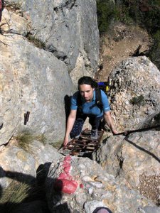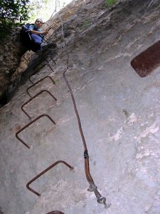 Cables d'acer i alguna corda ens ajuden a baixar pel Grau del Carrabassal