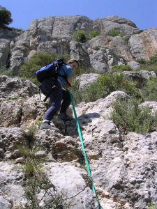 Pujant per la torrentera que baixa del Racó dels Boixets direcció al grau del Carrasclet