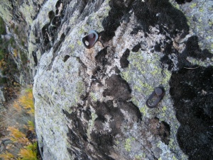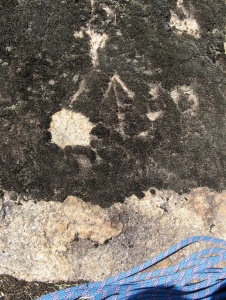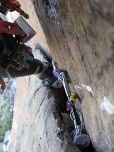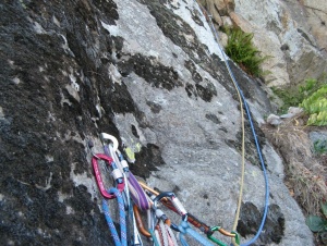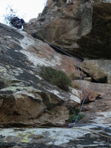 Tuvimos que abandonar material, este friend, que no sale ni barrenando la fisura :_( ... y un fisurero (manchita azul del fondo) que idem :_(