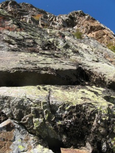 Inicio de la vía marcado entre el musgo y los liquenes