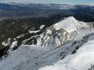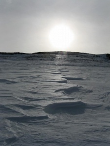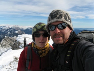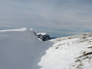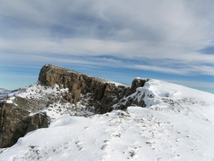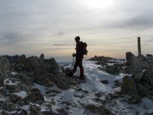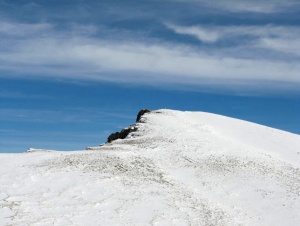 En la cima, sin nieve. El viento del dia anterior dejó la cima pelada.