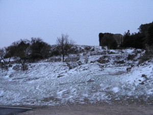 Ayer por la mañana, después que el dia anterior acabasemos la Travessa del Refugis de Prades, al levantarnos, la Mussara amaneció asi de blanquita, lastima que la nieve solo duró un suspiro.